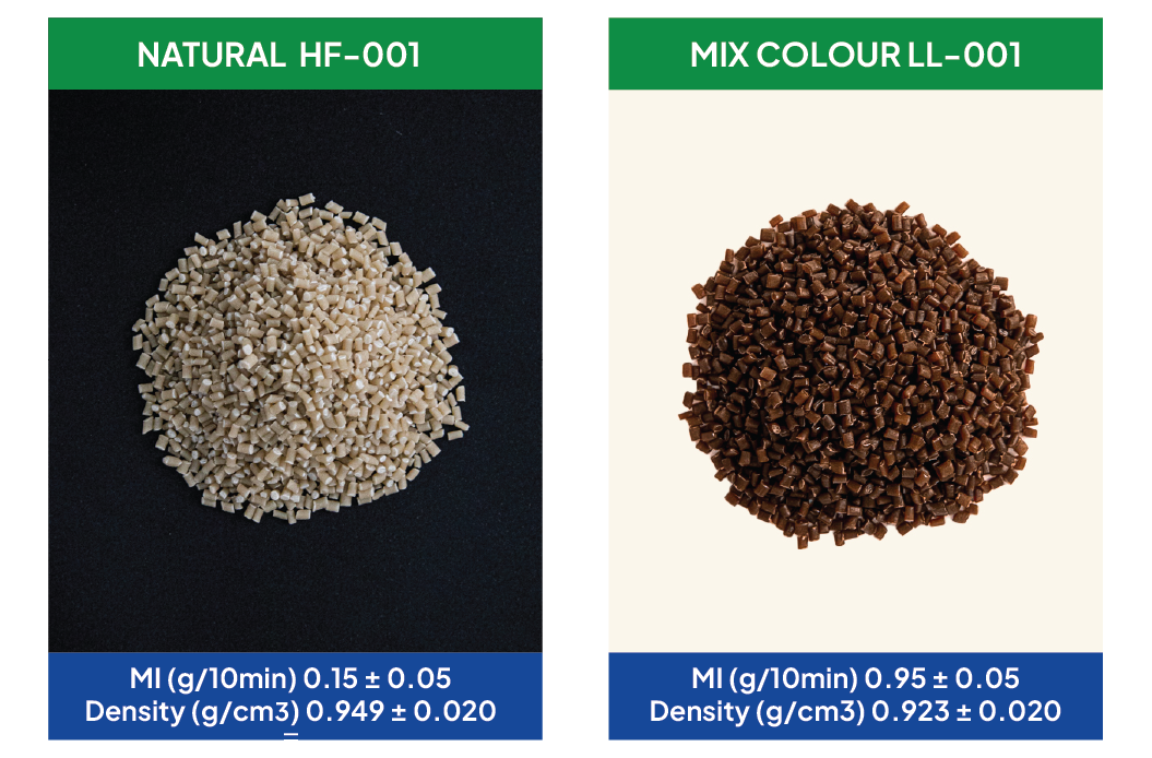 Aplikasi: Injection Molding (Lids, Bottle Closures, Toys, Houseware, Trash Cans, etc) and Bubble wrap film.